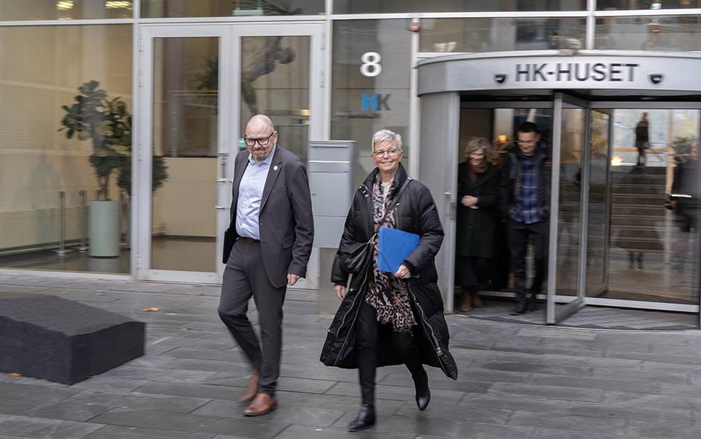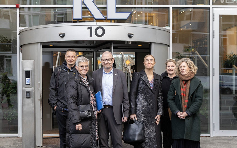 HK Kommunals forhandlere forud for deres første møde om OK26 med modparten i Kommunernes Landsforening (KL): (fra venstre) forhandlingskonsulent Theis Kaspersen, formand Lene Roed, næstformand Kasper Ejlertsen, afdelingsformand Ditte Gottlieb Bredahl, forhandlingskonsulent Nanna Steenbjerg Kolze og forhandlingschef Susanne Fagerlund. Se flere billeder fra det første møde i billedkarrusellen nederst på denne side. Foto: Lars Pryds (c)