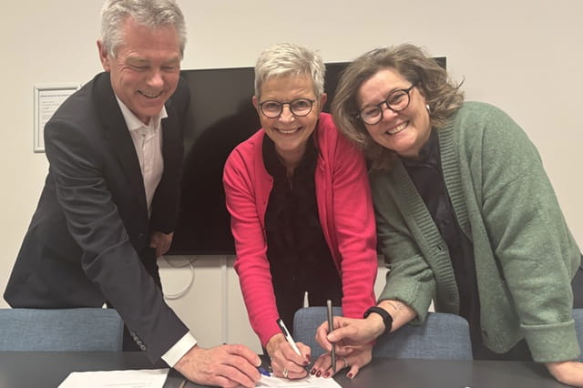 Ole Lund Jensen, Centerchef i Danske Regioner, Lene Roed, formand for HK Kommunal, og Nathali Degn, formand for Danske Sundhedsadministratorers Landsforening (SAL).