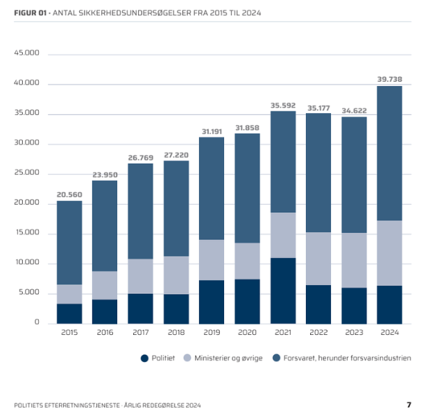 Politiets Efterretningstjeneste oplyser til HK Stats medier, at man i 2025 har modtaget 44.317 ansøgninger om sikkerhedsundersøgelse, heraf: