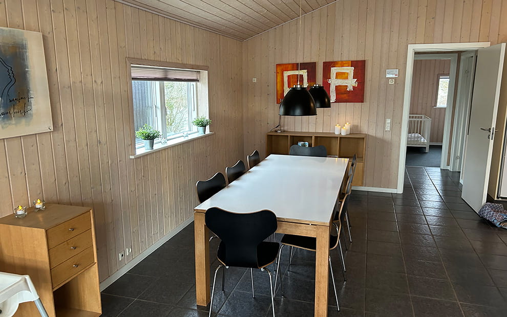 Feriehuset har plads til 8 personer fordelt på 4 soveværelser (2 værelser med enkeltsenge – 2 værelser med dobbeltsenge).
